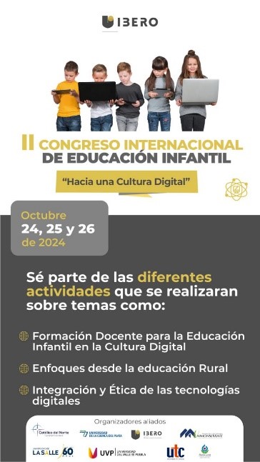 II Congreso internacional de educación infantil: hacia una cultura digitalDesde el programa Licenciatura en Educación Infantil, el pasado 24 de octubre participamos en la apertura del II Congreso de educación infantil: “hacia una cultura digital”, evento que se conmemoro por segundo año de la mano de universidades del país y con universidades aliadas de Argentina y México. Esta oportunidad posibilitó la visibilización de nuestro programa de Licenciatura en Educación Infantil y la creación de alianzas estratégicas. | ![]() ![]() |