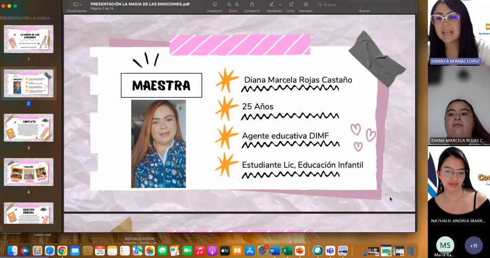 “Socialización de avances Proyectos de grado Práctica profesional” El 25 de noviembre tuvimos un productivo espacio donde los y las estudiantes de la Licenciatura en Educación Infantil, del convenio Enrútate-Marinilla, socializaron los avances logrados en sus proyectos de grado de la práctica profesional (semestre I); este es nuestro primer grupo de estudiantes del programa que inician la práctica profesional y se encuentran a un semestre de culminar su proceso formativo. Se rescata la vocación en sus prácticas, la apropiación temática, la creatividad y un excelente acompañamiento por parte de su asesora de prácticas Daniela Bernal López. |