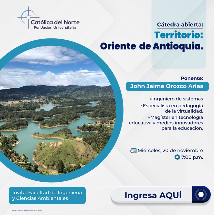 El pasado 20 de noviembre, el docente John Jaime Orozco lideró esta cátedra abierta, donde se exploraron las particularidades geográficas, históricas, culturales y sociales de esta región colombiana. Igualmente se analizaron los desafíos y oportunidades que enfrenta el Oriente Antioqueño en el contexto actual. |