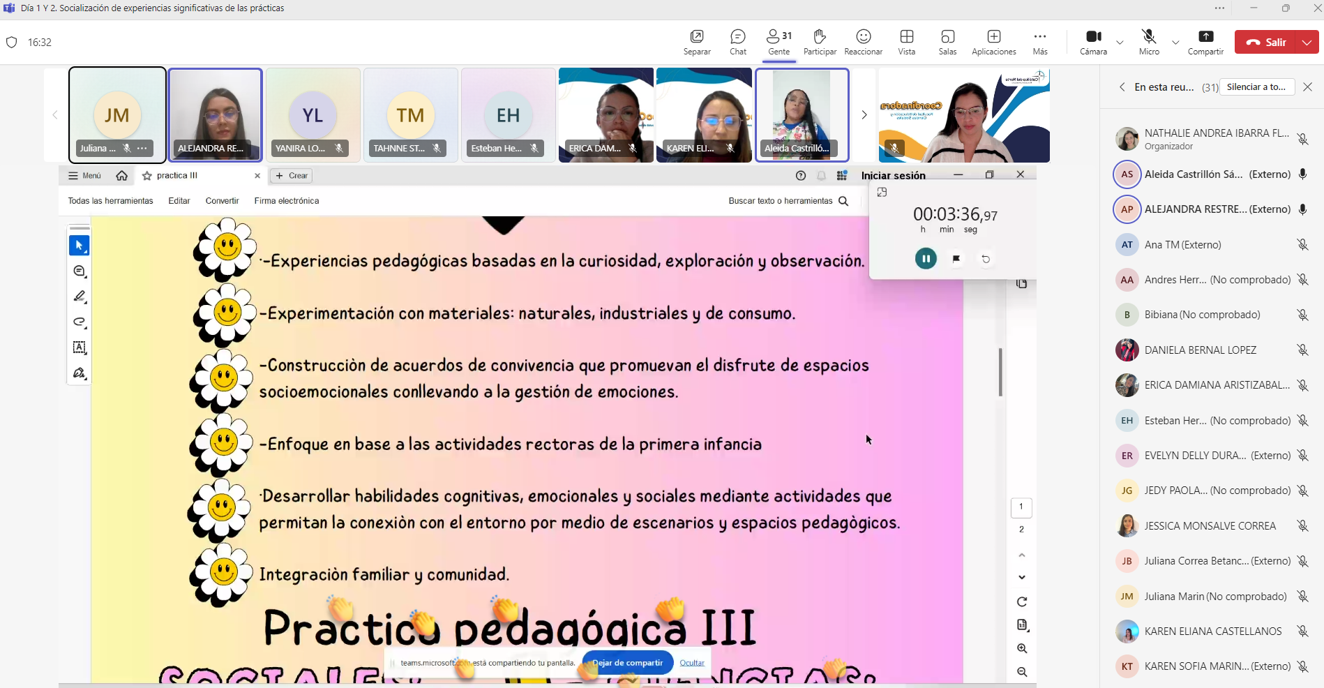 “Evento de cierre de semestre: socialización de experiencias significativas de las prácticas” El pasado 19 y 20 de noviembre nuestras y nuestros estudiantes de la Licenciatura en Educación Infantil fueron convocados por la monitora huella Alejandra Restrepo Pérez, para participar en el evento “Socialización de experiencias significativas de la práctica” algo que se viene instaurando como cierre del semestre; un espacio donde se hizo visible el compromiso de nuestros estudiantes en sus prácticas, la creatividad, la innovación y la gran apropiación que van adoptando del saber pedagógico. |