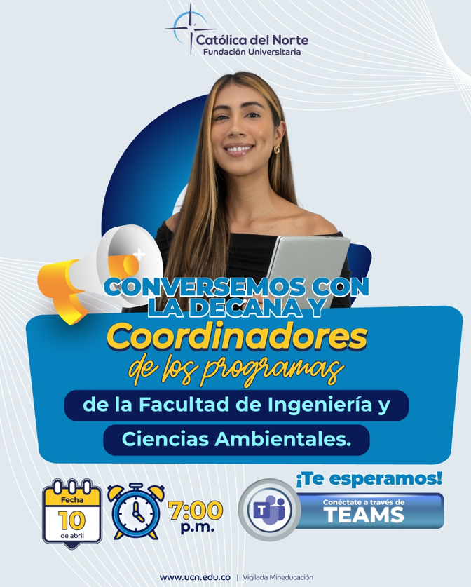 CONVERSATORIO CON ASPIRANTESEl pasado 10 de abril se desarrolló el evento: “Conversemos de los programas de la Facultad de Ingeniería y Ciencias Ambientales”, donde la Decana de la Facultad y los Coordinadores Nery Pino y Eder Acevedo, tuvieron la oportunidad de conversar con personas interesadas en alguno de los programas de la Facultad. Allí se hizo un recorrido por cada uno de ellos, mostrando sus fortalezas y perfiles, acordes con las necesidades y expectativas del mercado actual. |