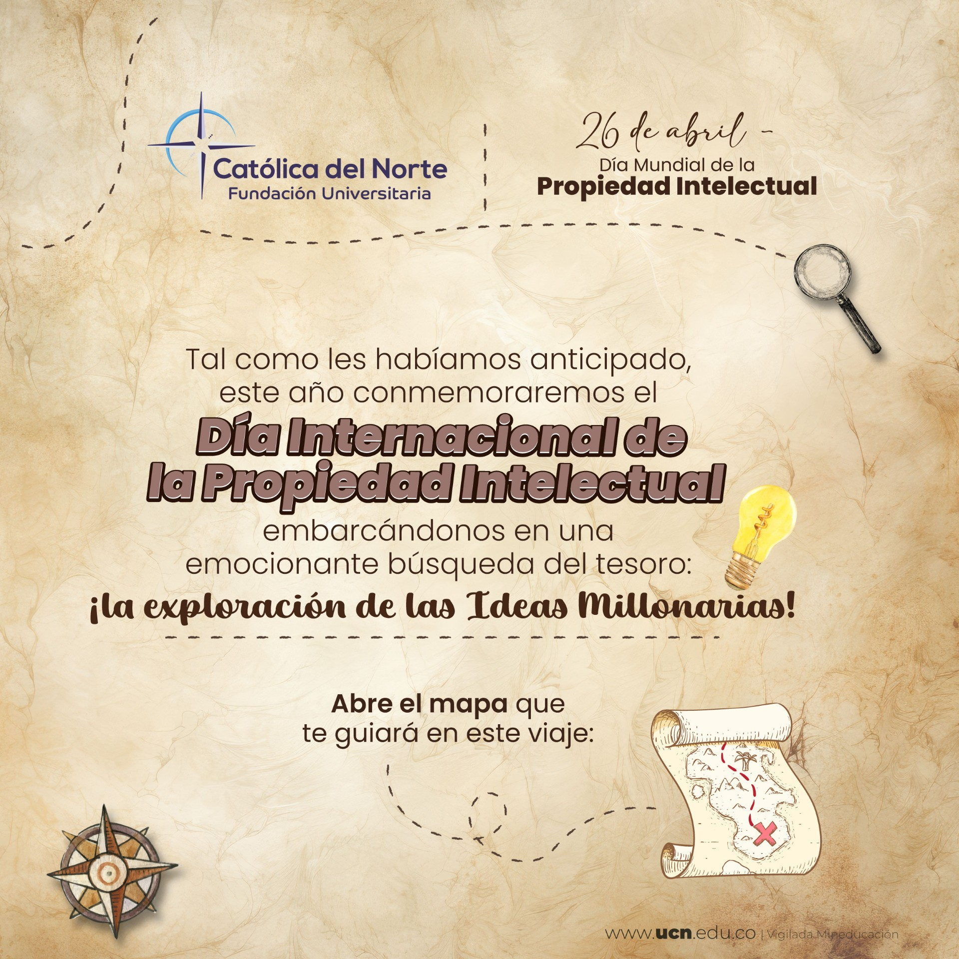 En el marco de la conmemoración del Día Internacional de la Propiedad Intelectual, te invitamos a participar en nuestra emocionante búsqueda del tesoro: La exploración de las ideas millonarias.