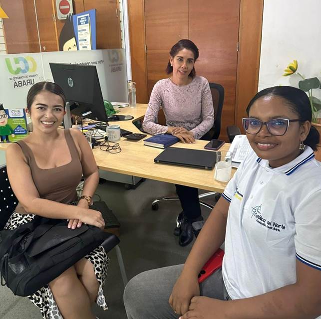 Entre el 5 y el 7 de febrero, se desarrolló una agenda de reuniones en Apartadó, entre la cuales, se destacan los encuentros con representantes de la Cámara de Comercio del Urabá y el Complejo Tecnológico Agroindustrial, Pecuario y Turístico- Sena. De esta manera, la Católica del Norte fortalece su presencia en Urabá logrando un mayor reconocimiento y apropiación del territorio. | ![]() Dra. Liliana Salinas, Directora de Enlace Empresarial, Cámara de Comercio Urabá ![]() Henry Barrientos: Profesional Oficina Pública de empleo -Complejo Tecnológico Agroindustrial, Pecuario y Turístico- Sena. |