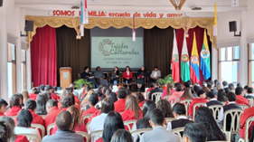 EVENTO FINAL DE SOCIALIZACIÓN RESULTADOS DEL PROYECTO “TEJIDOS CULTURALES” EN ALIANZA CON LA ESCUELA NORMAL SUPERIOR PEDRO JUSTO BERRÍO.El pasado 29 de octubre, en la sede principal de la Normal Superior Pedro Justo Berrío en Santa Rosa de Osos, se realizó el evento de socialización de las conclusiones del proyecto, que reunió a 220 personas. Entre los participantes se encontraban estudiantes y docentes del grado 11 y del Programa de Formación Complementaria de la Normal, docentes y directivos de la Normal Superior Santa Teresita de Sopetrán, funcionarios del Ministerio de Educación Nacional, quienes financiaron el proyecto, así como tres invitadas de las comunidades afro e indígena de Condoto, Chocó, y docentes investigadoras de la Facultad de Educación y Ciencias Sociales de la FUCN La jornada se desarrolló bajo la metodología de círculos dialógicos itinerantes, lo que permitió socializar, sensibilizar y empoderar a la comunidad educativa sobre los aprendizajes y los principales hallazgos obtenidos durante el trabajo de campo del proyecto. | ![]() ![]() | EDUCACIÓN CONTINUA |