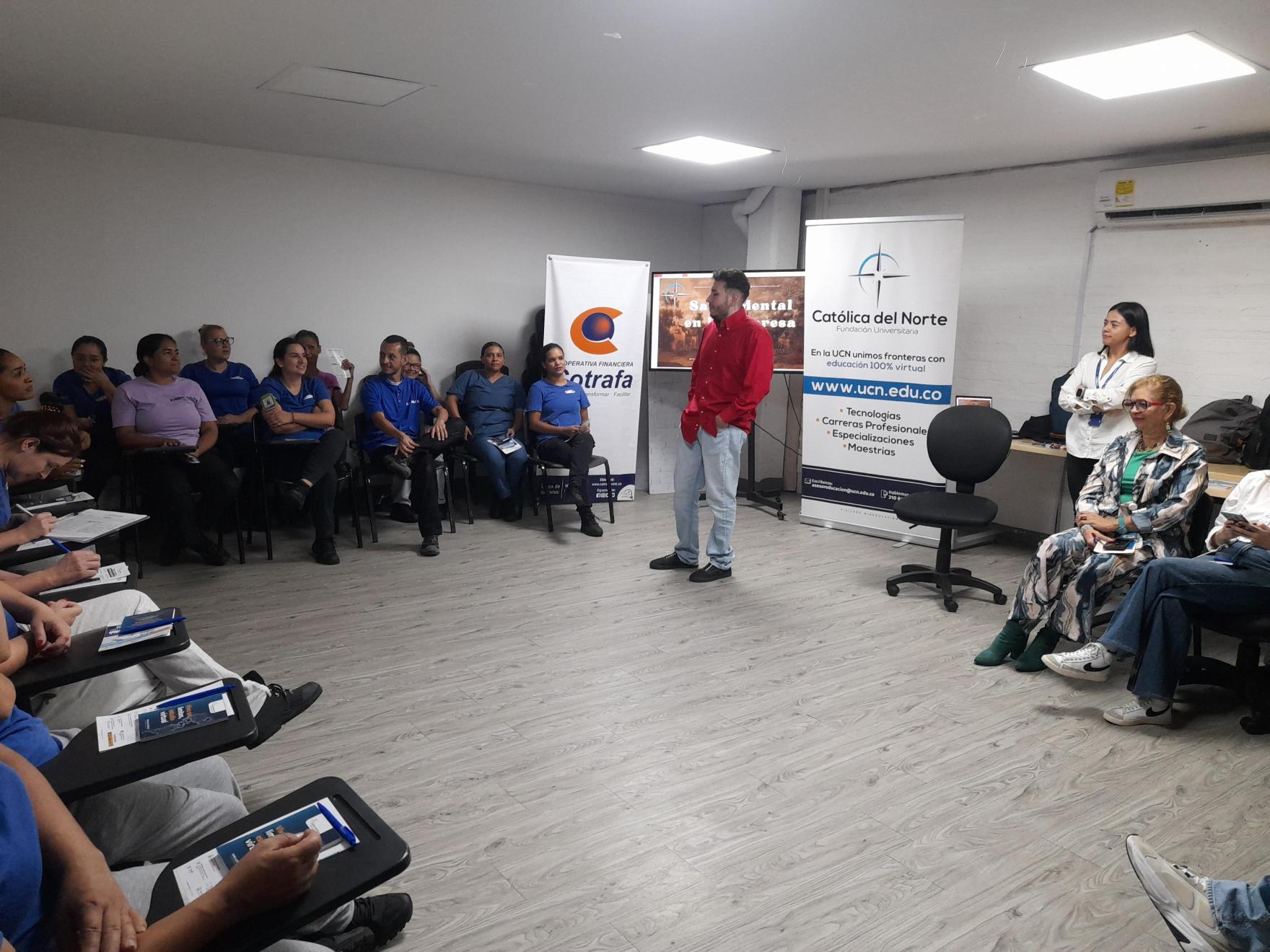 EDUCACIÓN CONTINUA LLEVA SU FORMACIÓN A LOS “MOMENTOS EMPRESARIALES” DE COTRAFA.Desde Educación Continua nos complace compartir que, durante este año, hemos sido aliados formadores en los llamados “Momentos Empresariales” de Cotrafa, una estrategia que la cooperativa desarrolla junto a empresas asociadas en diferentes regiones del departamento. Gracias a la confianza de este importante aliado, hemos sido seleccionados como uno de sus proveedores para la ejecución de espacios de formación dirigidos a colaboradores de distintas organizaciones. Hasta la fecha, hemos desarrollado cinco charlas, realizadas en municipios como Apartadó, Bello y Medellín. La más reciente se llevó a cabo los días 23 y 24 de julio, con la charla titulada: “Finanzas Personales y Salud Mental”, un espacio formativo orientado a promover el bienestar integral de los participantes. Desde Educación Continua agradecemos la oportunidad de aportar a estos escenarios y reiteramos nuestro compromiso con la formación pertinente, cercana y de impacto para el sector empresarial y cooperativo. |
