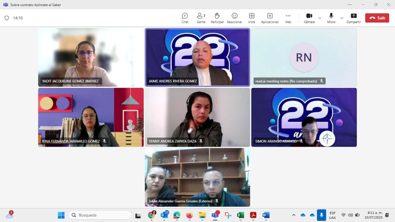Reuniones de seguimiento a los proyectos en ejecución.Como parte de la estrategia de seguimiento y acompañamiento a los proyectos en ejecución, hemos participado en múltiples espacios con las coordinaciones de los proyectos, las supervisiones de los contratos por parte de las entidades contratantes y hemos continuado apoyando las gestiones de articulación al interior de la institución de manera que se cumplan los compromisos contractuales y se logren los objetivos esperados para cada proyecto. Ha sido un semestre en el que hemos contado con toda la apertura y la disposición de los equipos de los proyectos y de los líderes y colaboradores de las diferentes áreas de la institución. Extendemos nuestro agradecimiento porque todos sumamos y aportamos en el cumplimiento de los compromisos pactados en los proyectos. |