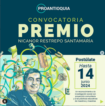 Acompañamiento al Centro de Investigación e Innovación en postulación al premio Nicanor Restrepo Santamaría Socializamos y acompañamos al Centro de Investigaciones e Innovación para la postulación al premio Nicanor Restrepo Santamarría de Proantioquia. Se postularon 4 proyectos en la categoría de Investigación social con proyección comunitaria. |