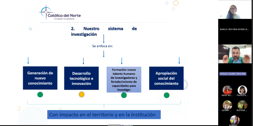 Semilleros de investigación: motor del aprendizaje y la innovación en la UCNEl pasado 4 de agosto se realizó una reunión con profesores coordinadores de programa para socializar aspectos clave sobre los semilleros de investigación y la convocatoria del próximo encuentro de la Red de Universidades Católicas (RUCC). Durante el espacio, liderado por Karla Cristina Bonilla y Sergio Gómez Molina, se reflexionó sobre la importancia de fortalecer la participación estudiantil en estos procesos formativos y sobre el rol estratégico que tienen los semilleros en el ecosistema de investigación institucional. Actualmente, la UCN cuenta con 11 semilleros articulados a grupos de investigación, y se proyecta seguir ampliando y reconociendo estas iniciativas. En este encuentro también se compartieron avances sobre el plan de formación investigativa y la agenda para la participación en eventos nacionales e internacionales. De igual manera, durante la reunión, se socializaron los pilares del ecosistema de investigación institucional y se destacó el papel de los semilleros como núcleo de la investigación formativa en la UCN. |