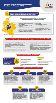 El Nodo Centro de la RUCC está conformado por instituciones de educación superior de Bogotá, Chía, Tunja y Villavicencio