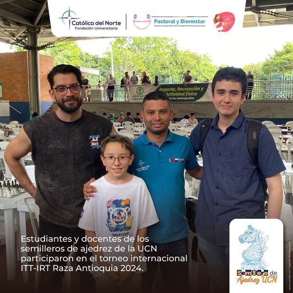 ¡Felicitamos a nuestros estudiantes y docentes de los semilleros de ajedrez de la UCN, quienes participaron en el torneo internacional ITT-IRT Raza Antioquia 2024, organizado por la Liga de Ajedrez de Antioquia!