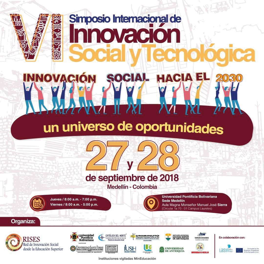 Llega la sexta edición del Simposio Internacional de Innovación Social y Tecnológica, que se realizará los días 27 y 28 de Septiembre en Medellín, en el marco del Encuentro Latinoamericano de Innovación Social en alianza entre las Redes LASIN y RISES.