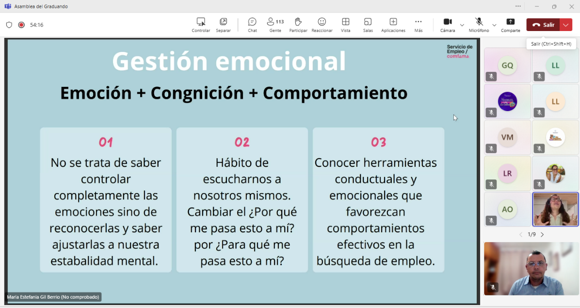 Como parte de los procesos que se ejecutan desde Pastoral y Bienestar, a través del Centro Virtual del Graduado, el pasado 18 de marzo de 2025, se realizó la Asamblea del Graduando, con los estudiantes que se proclamaron como profesionales el viernes 21 de marzo. El objetivo de este encuentro fue generar un espacio de formación y de diálogo, en el cual se sigan fortaleciendo vínculos de Bienestar entre los graduandos con la institución; además, se estableció un diálogo con la academia, sobre experiencias vividas a lo largo del proceso formativo y un espacio de reconocimientos a los mejores trabajos de grados por facultad. También, y no menos importante, se compartió una mentoría sobre: “habilidades sociolaborales para ser exitoso”, con la Caja de Compensación COMFAMA, por medio de la cual, se realiza toda la ruta de empleabilidad de nuestros graduados con Sentido Humano. |